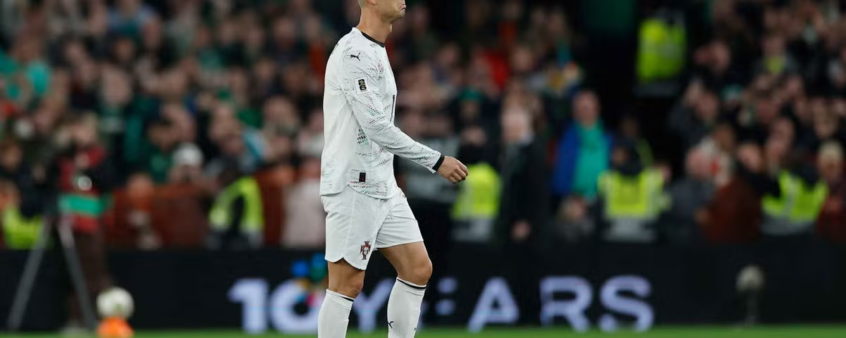 Ronaldo awalnya menerima kartu kuning karena menyikut punggung bek Irlandia, Dara O’Shea, tetapi hukumannya ditingkatkan menjadi kartu merah setelah peninjauan.